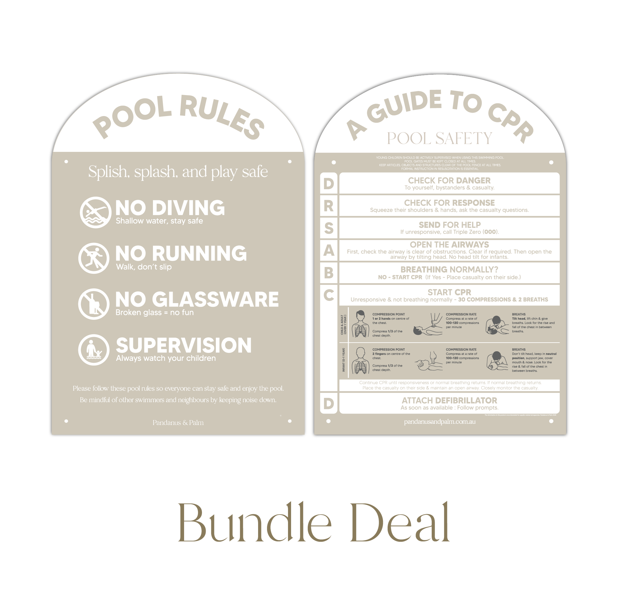 Pool CPR Safety Sign + Pool Rules Bundle | Arch | Beige