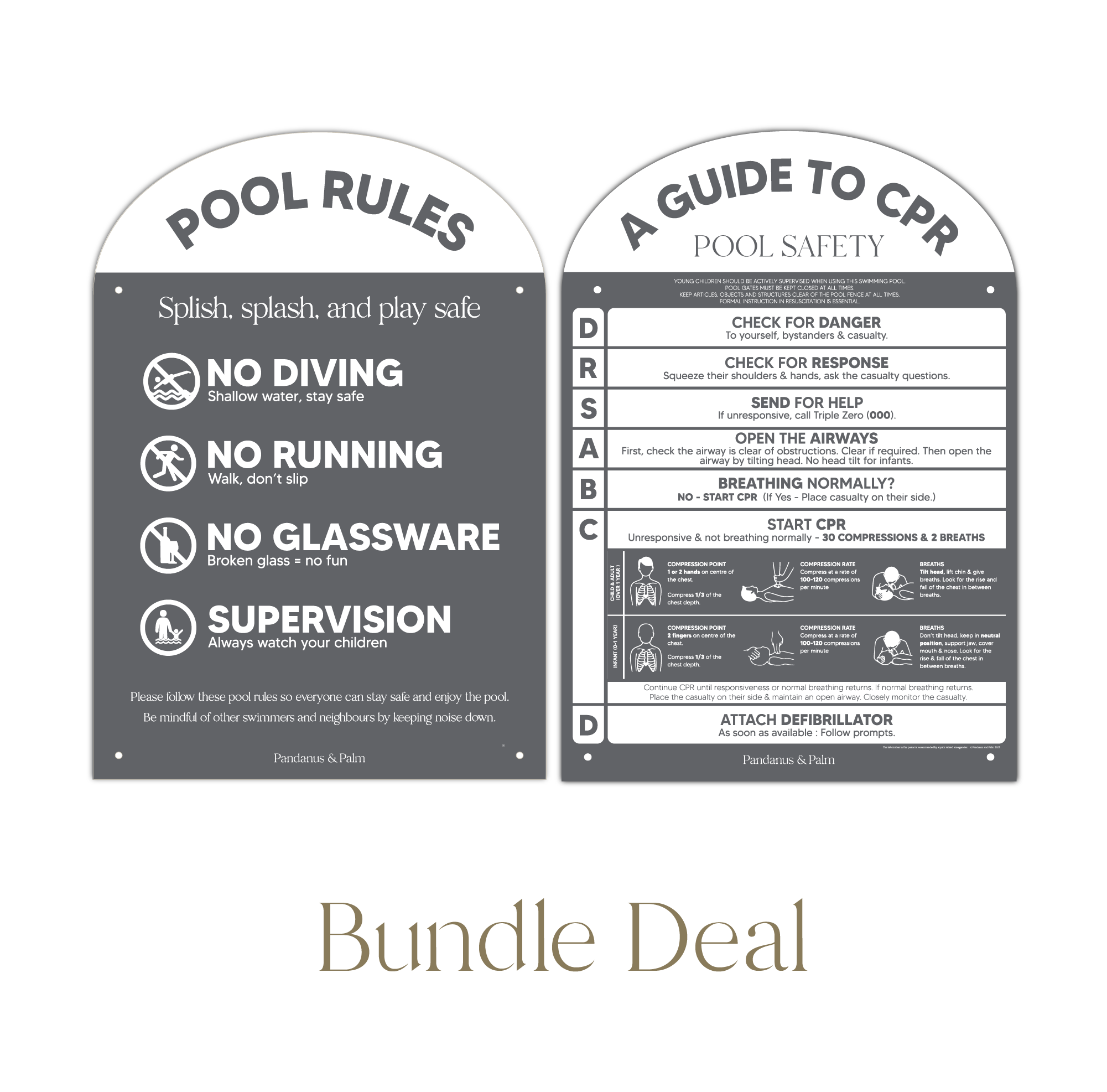 Pool CPR Safety Sign + Pool Rules Bundle | Arch | Charcoal