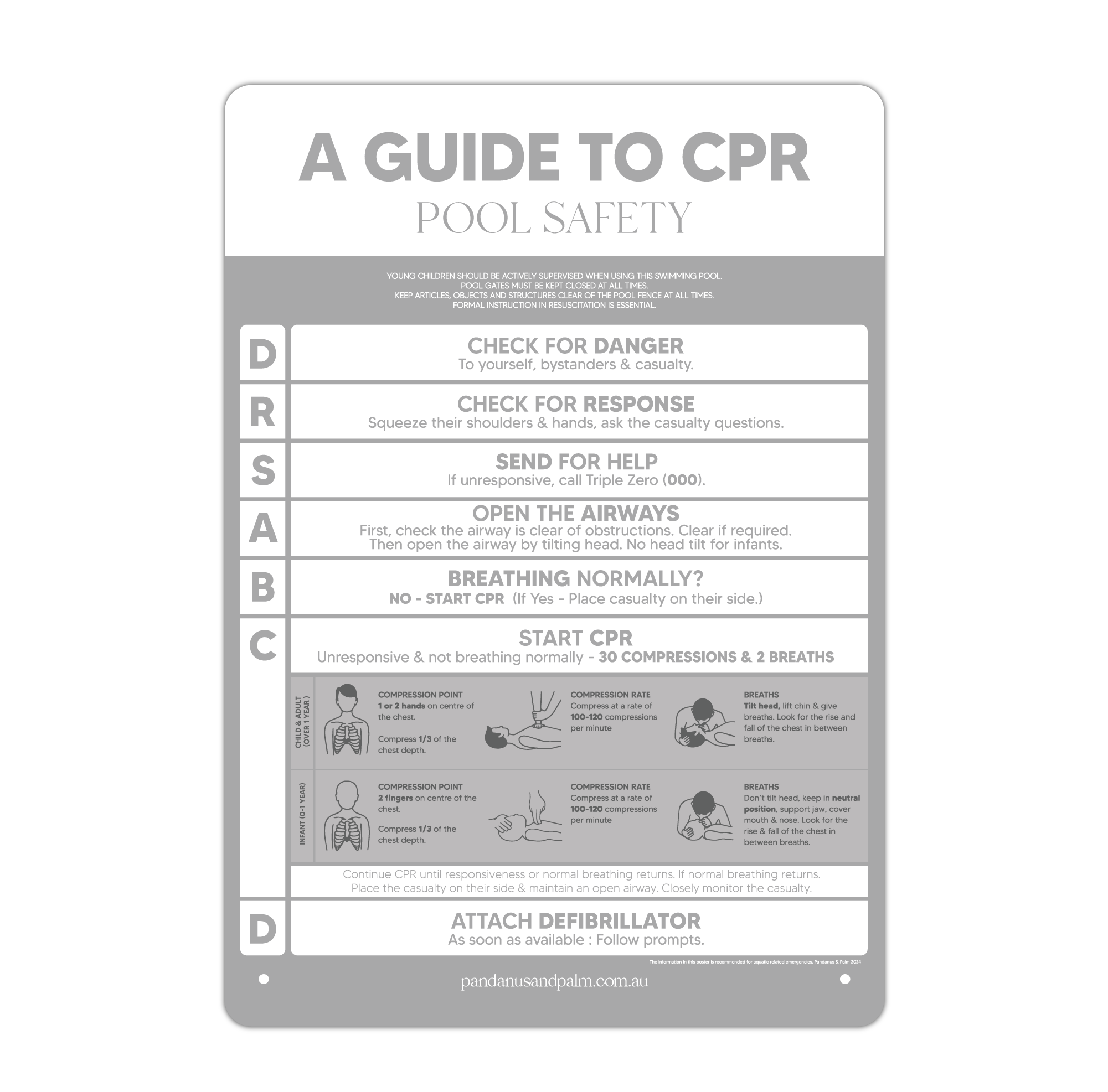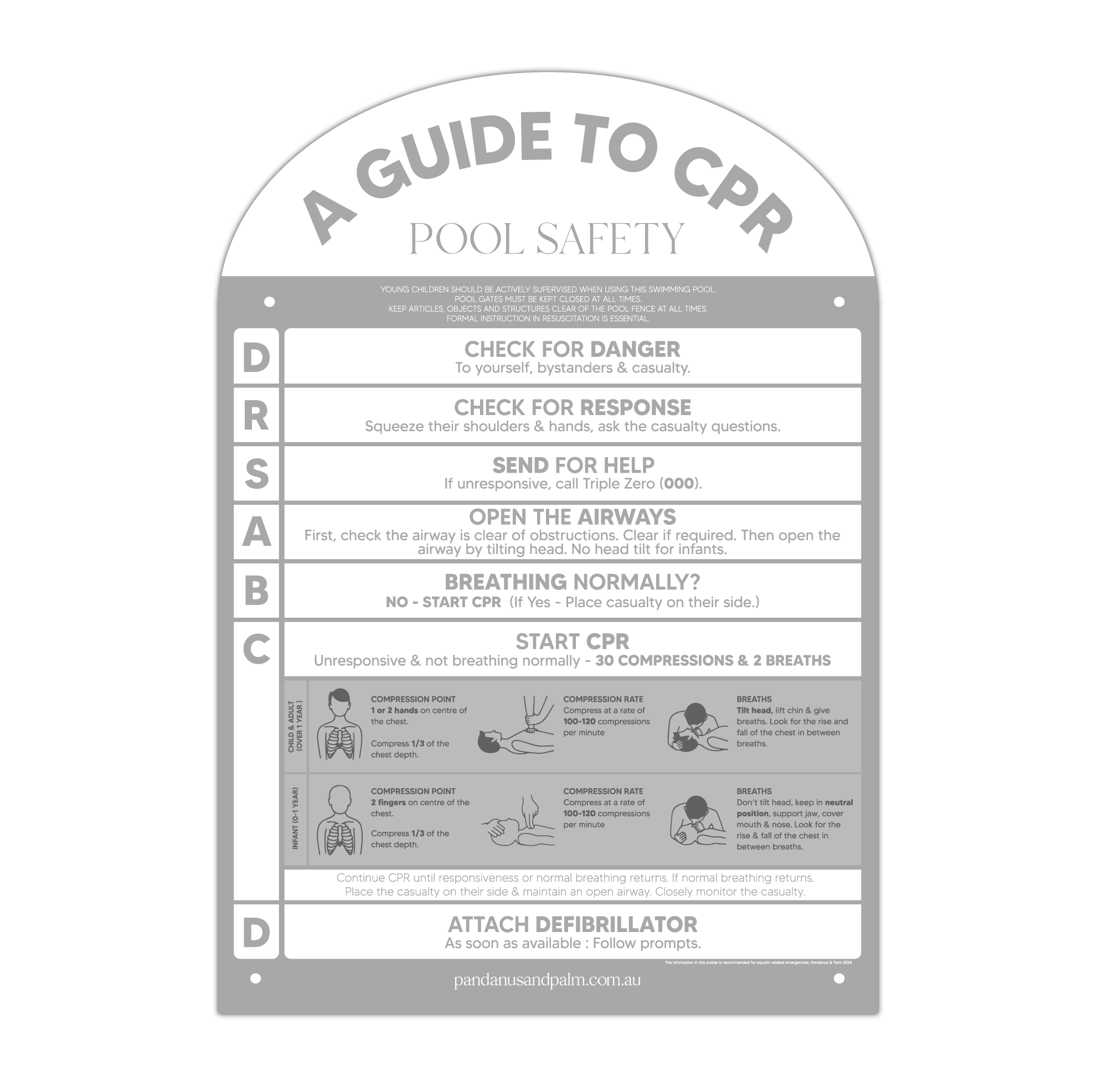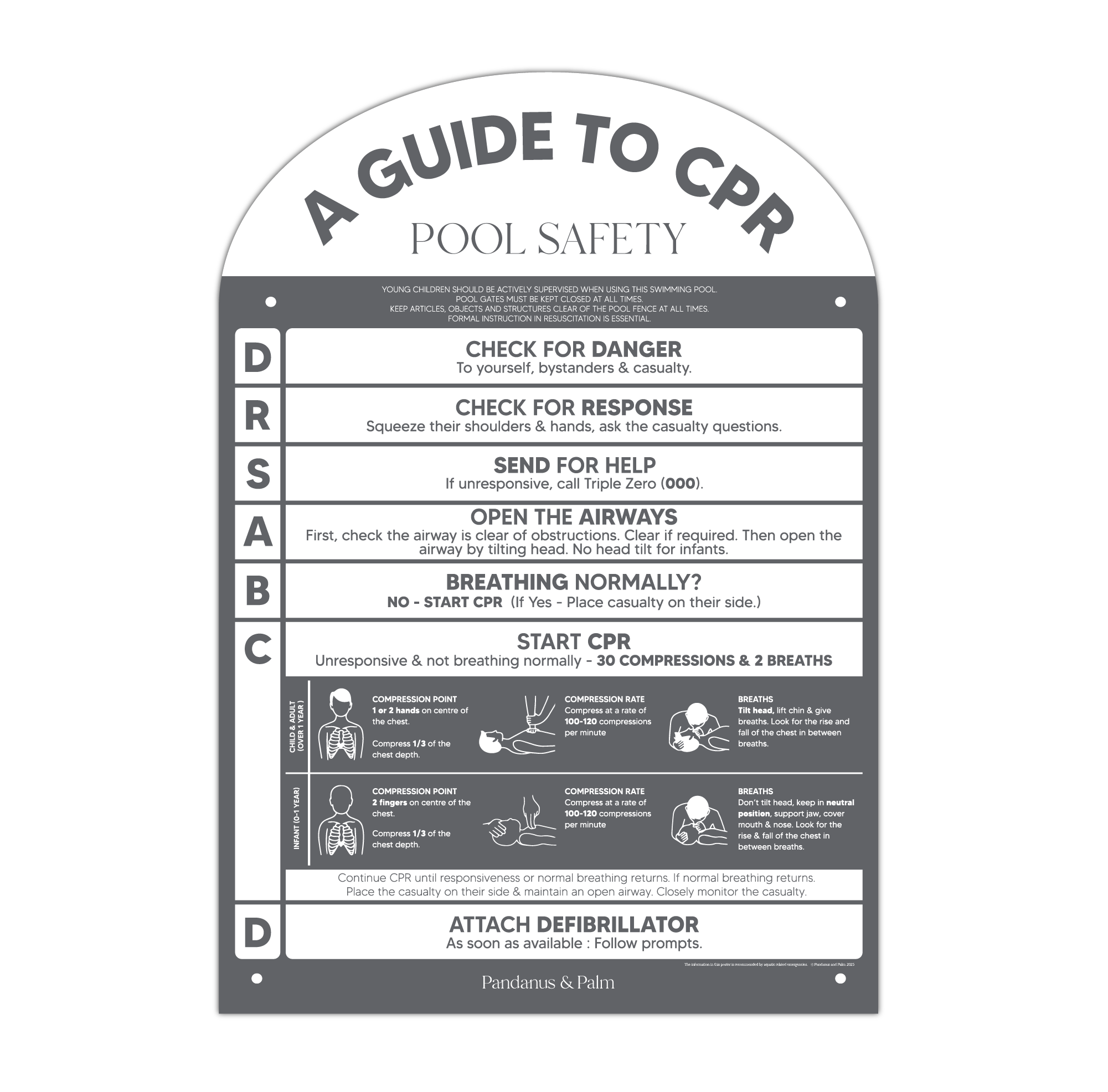 Designer Pool CPR Safety Sign | Arch | Charcoal
