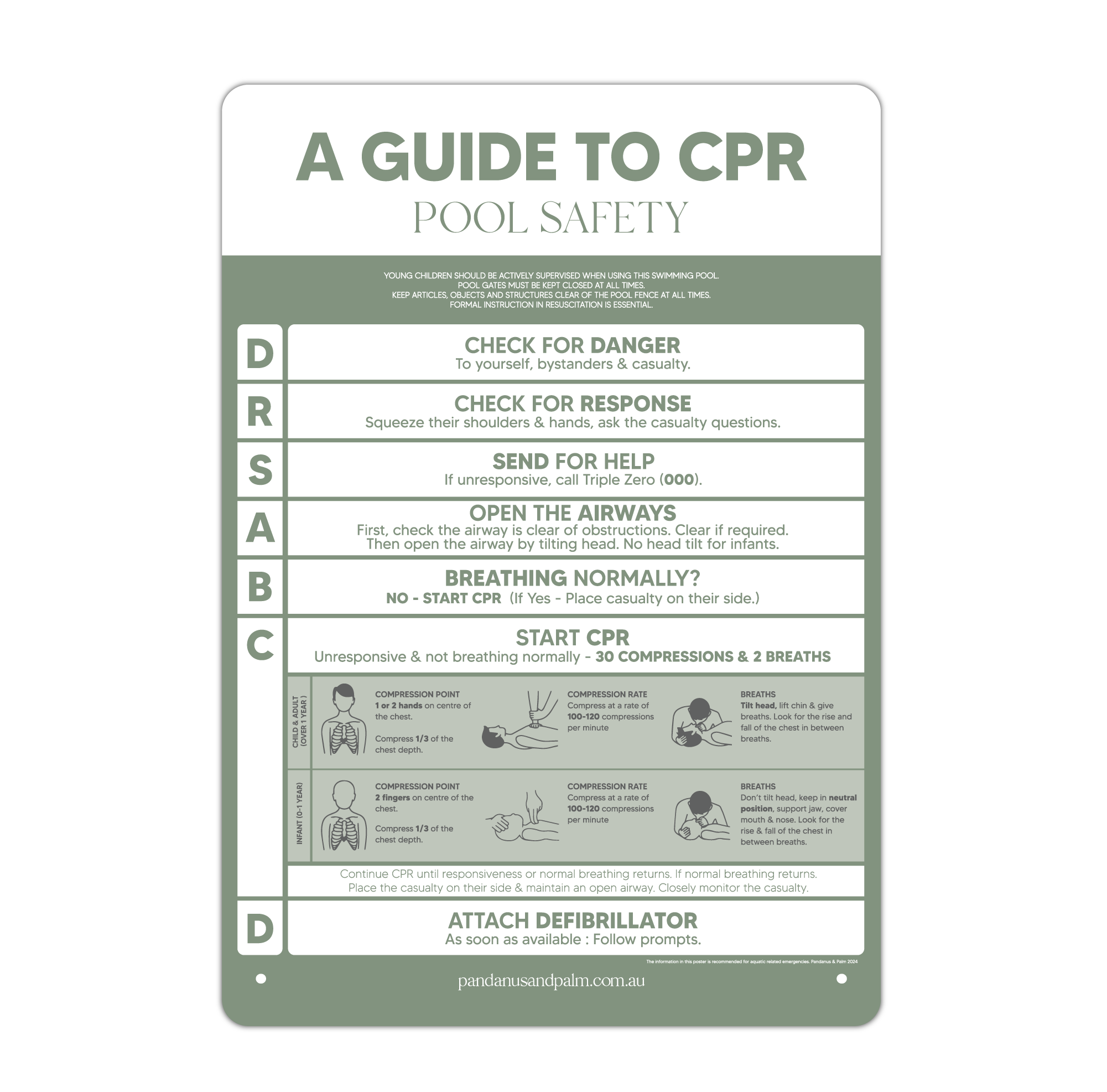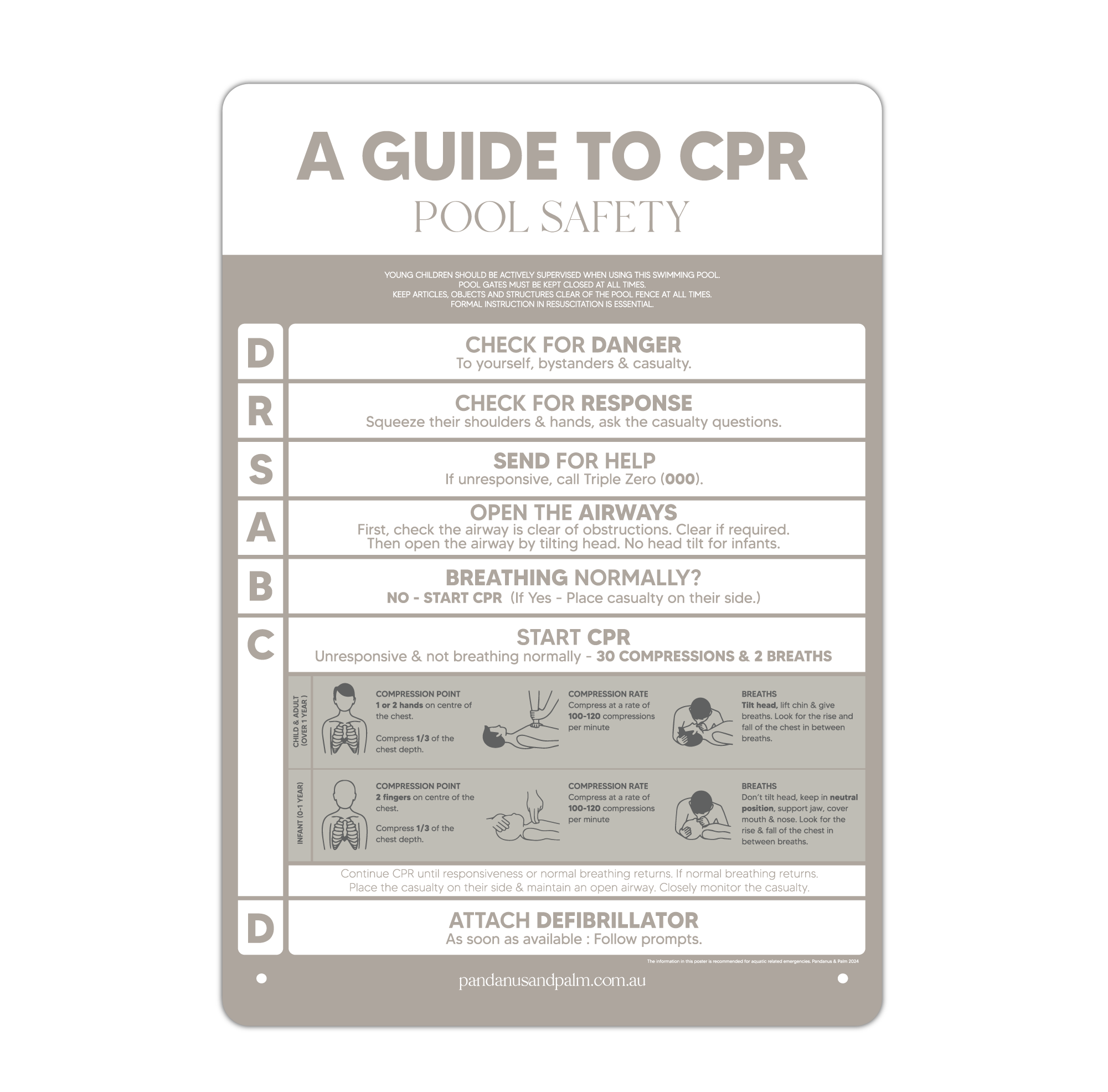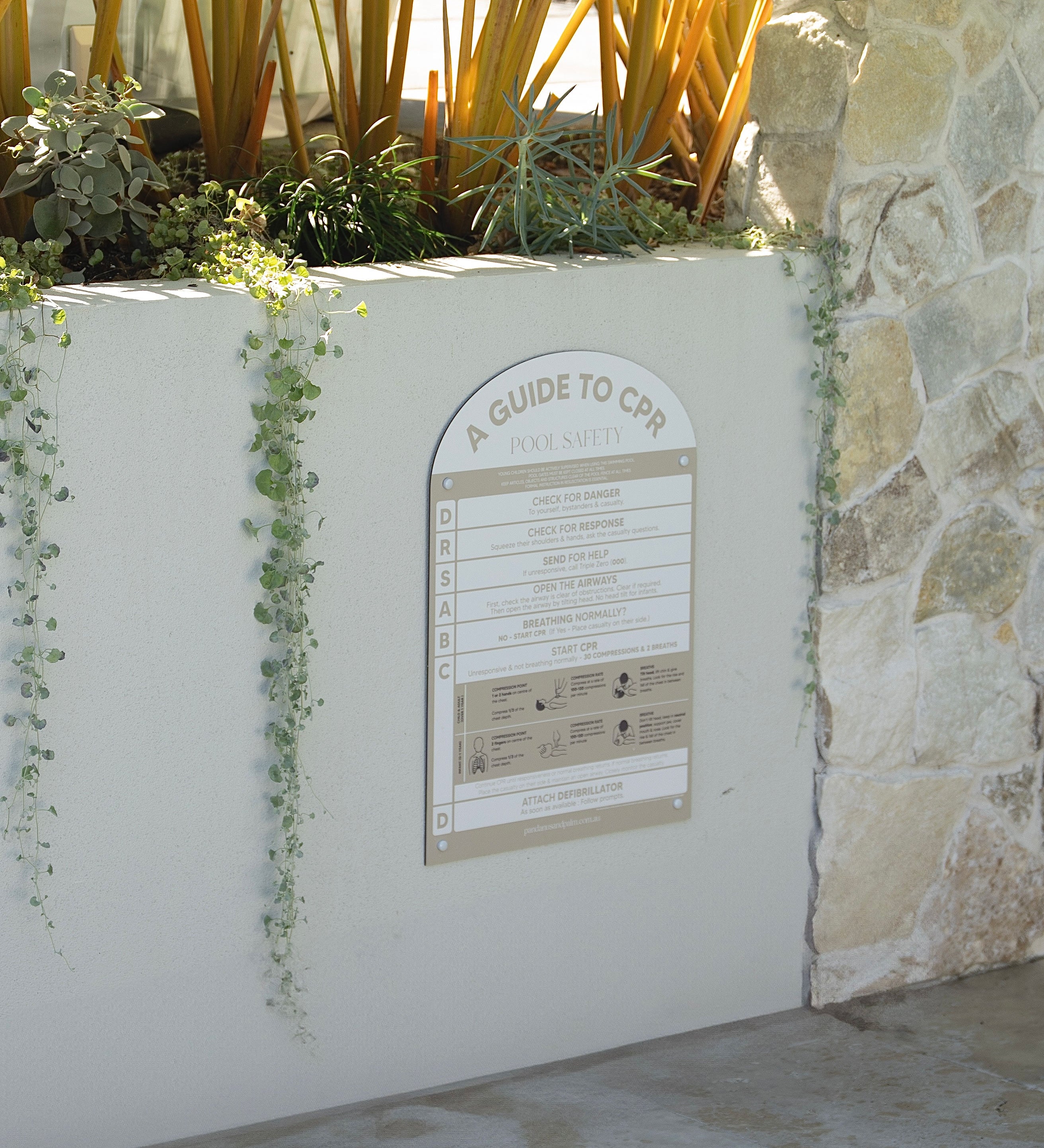 Designer Pool CPR Safety Sign | Arch | Fawn