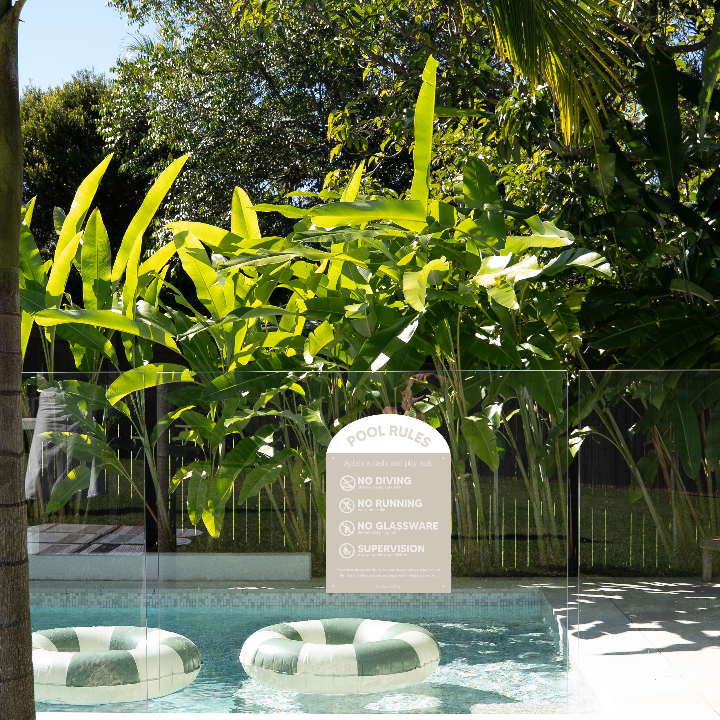 Pool CPR Safety Sign + Pool Rules Bundle | Arch | Beige