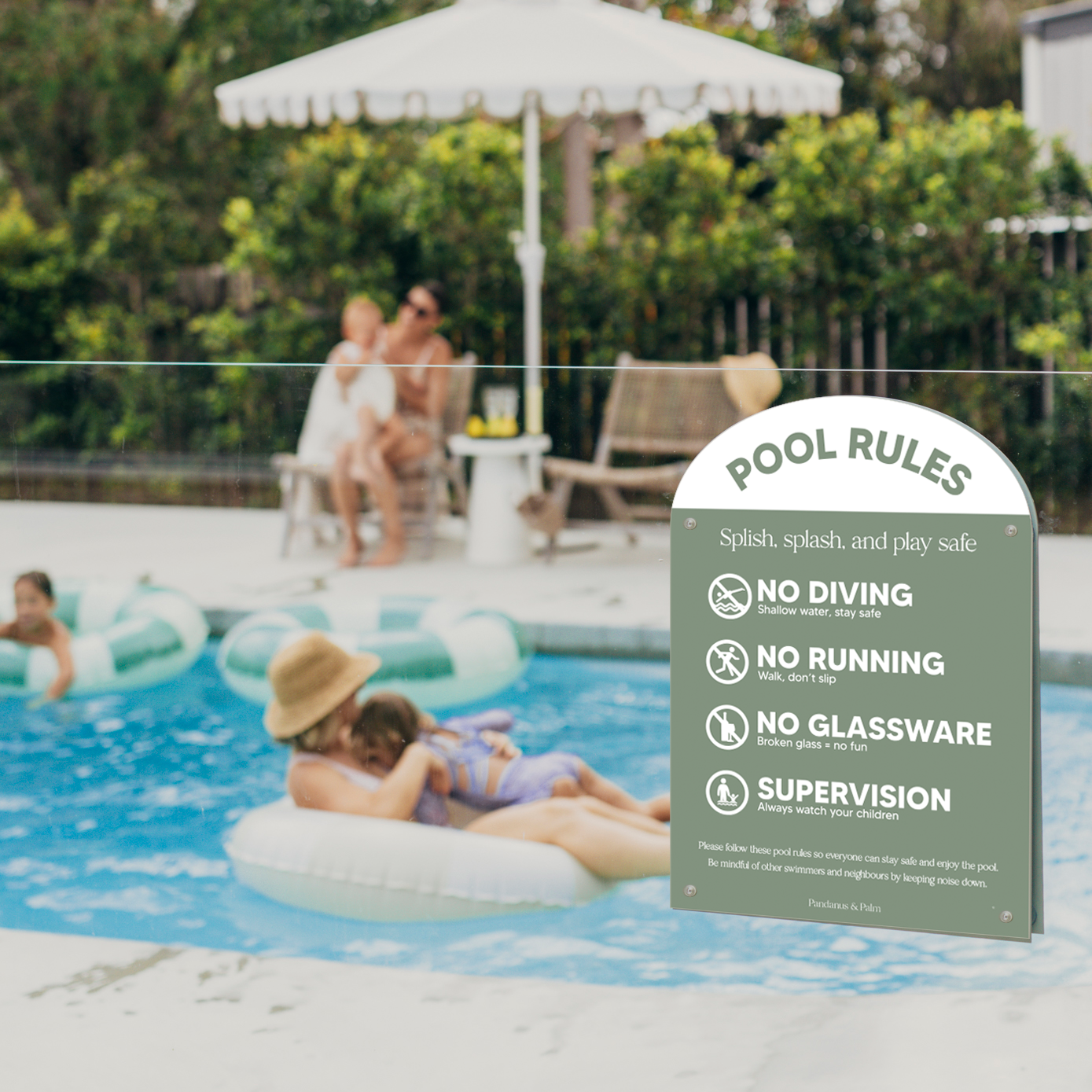 Pool CPR Safety Sign + Pool Rules Bundle | Arch | Green