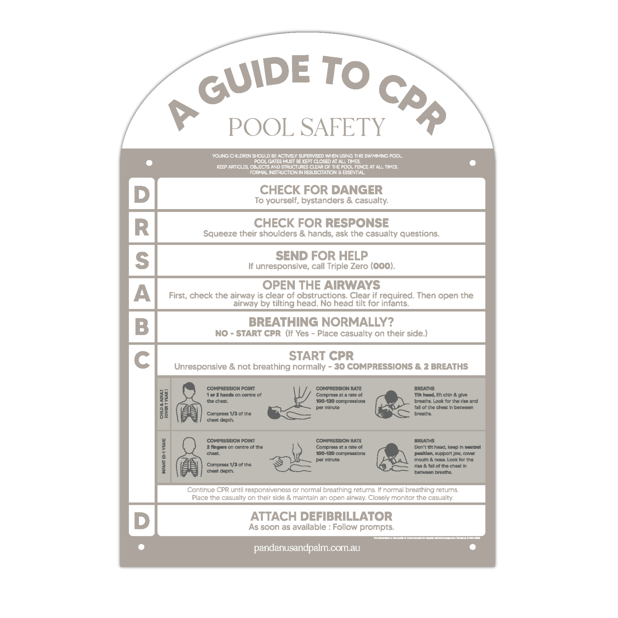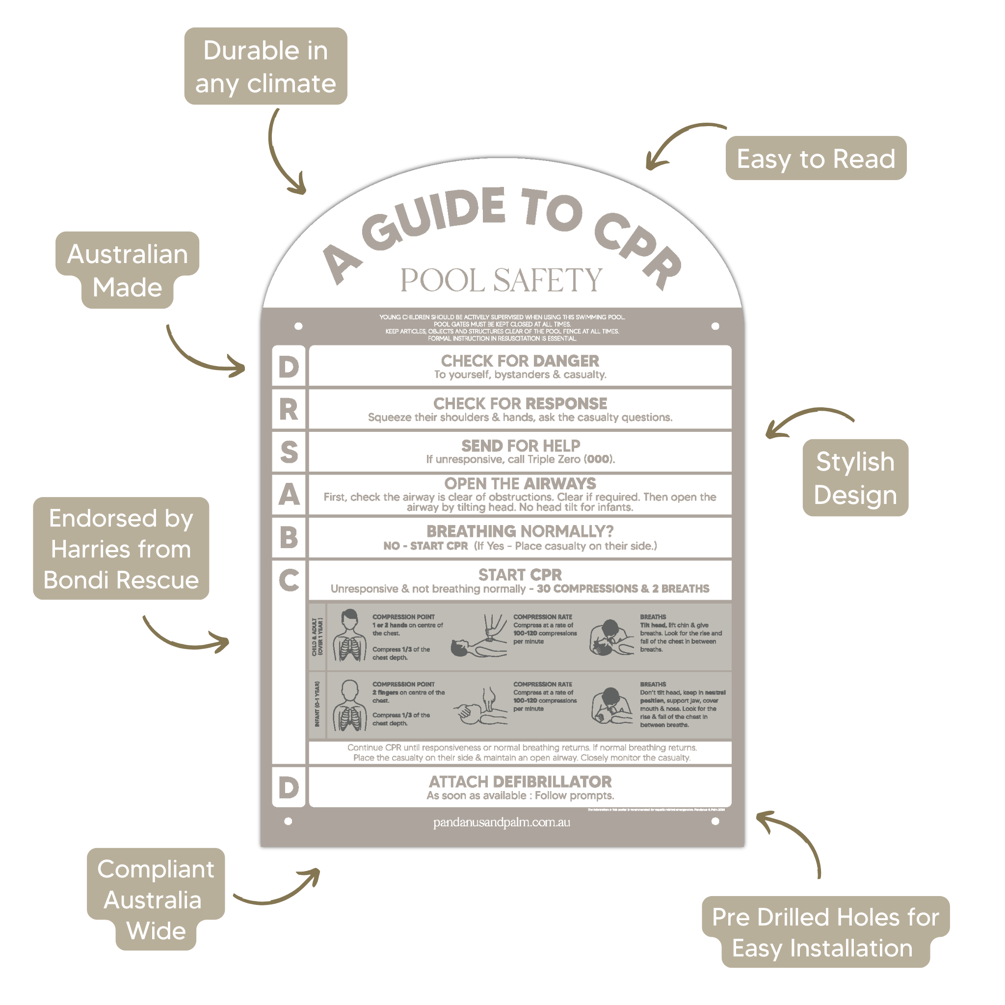 Compliment your beautiful pool with our aesthetically pleasing CPR pool safety signs. Proudly Australian designed in Peregian Beach, QLD and Australian made.