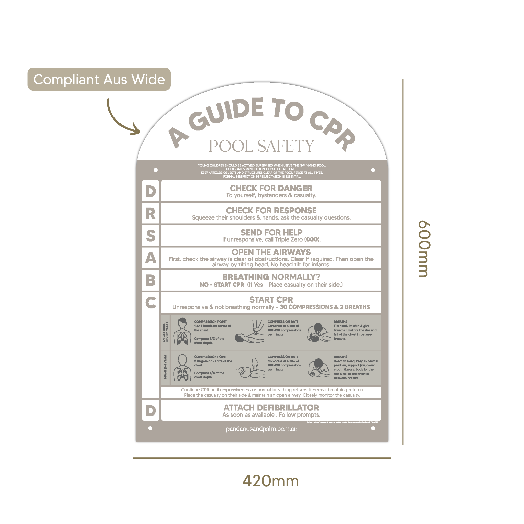 Our CPR signs meet Australian Regulations & are Compliant Australia wide - Although it is the responsibility of the customer to check with their own local pool safety guidelines and certifier to confirm the sign meet guidelines.
