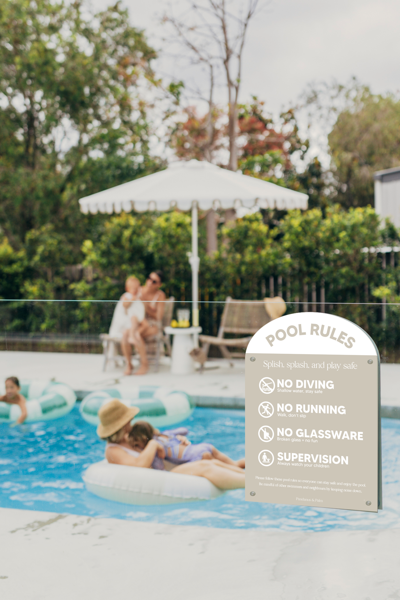 Pool CPR Safety Sign + Pool Rules Bundle | Arch | Beige
