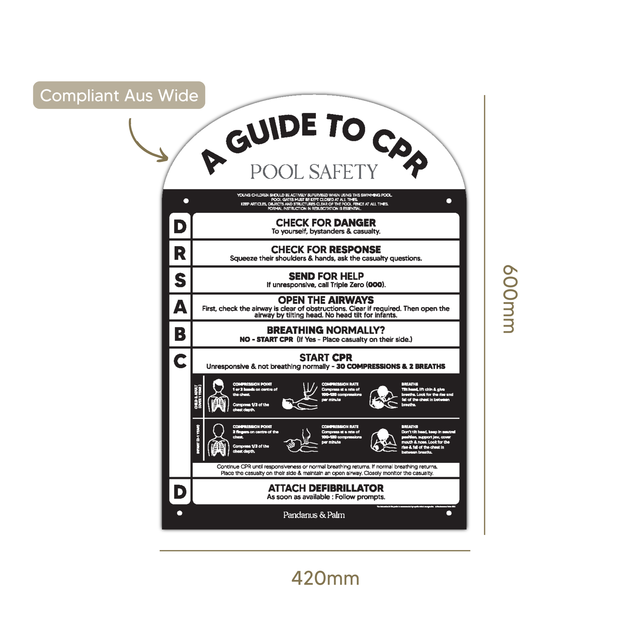 Our CPR signs meet Australian Regulations & are Compliant Australia wide - Although it is the responsibility of the customer to check with their own local pool safety guidelines and certifier to confirm the sign meet guidelines.