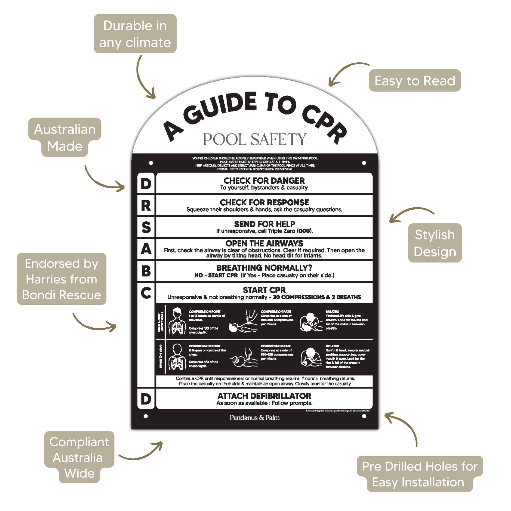 Compliment your beautiful pool with our aesthetically pleasing CPR pool safety signs. Proudly Australian designed in Peregian Beach, QLD and Australian made.