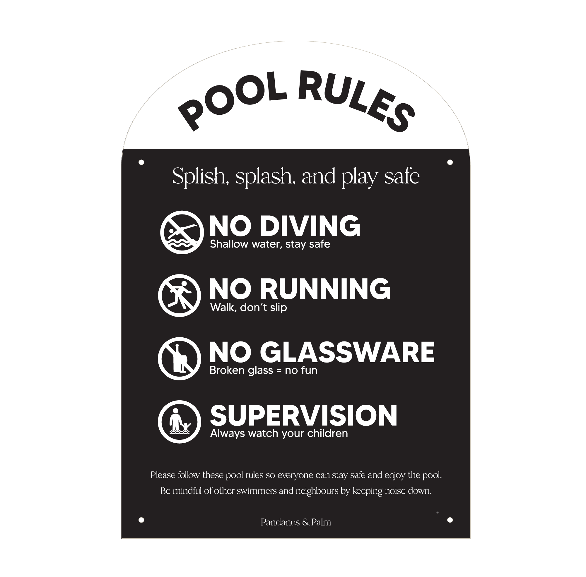 Designer Pool Rules Sign | Arch | Black
