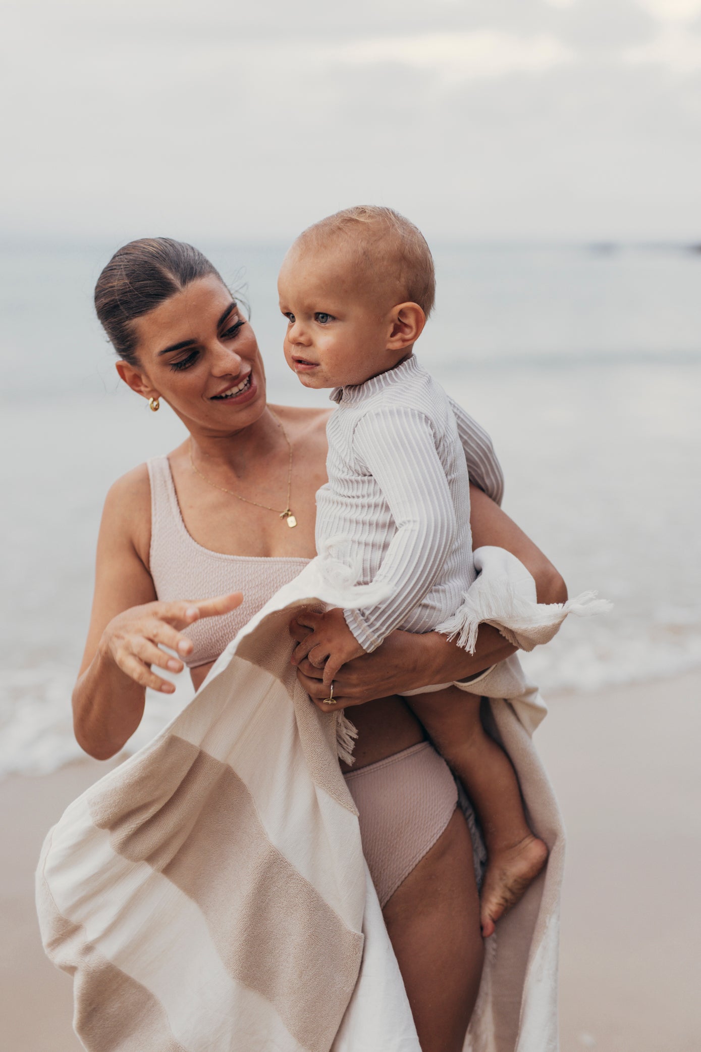 Luxe Finn Stripe Pool Towel | Beige
